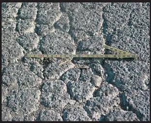 | High | ![]() | Network or pattern cracking progressed so that pieces are well-defined and spalled at the edges; some of the pieces rock under traffic. |