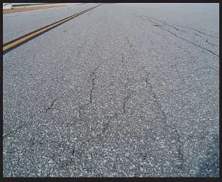 Alligator or fatigue cracking is a series of interconnecting cracks caused by fatigue failure of the asphalt surface under repeated traffic loading. The cracking initiates at the bottom of the asphalt surface (or stabilized base) where tensile stress and strain is highest under a wheel load. The cracks propagate to the surface initially as a series of parallel cracks. After repeated traffic loading, the cracks connect and form many- sided, sharp- angled pieces that develop a pattern resembling chicken wire or the skin of an alligator. The pieces are less than 2 feet (0.6 meters) on the longest side. Alligator cracking occurs only in areas that are subjected to repeated traffic loadings, such as wheel paths. Therefore, it would not occur over an entire area unless the entire area was subjected to traffic loading. (Pattern-type cracking, which occurs over an entire area that is not subject to loading, is rated as block cracking, which is not a load- associated distress.) Alligator cracking is considered a major structural distress.