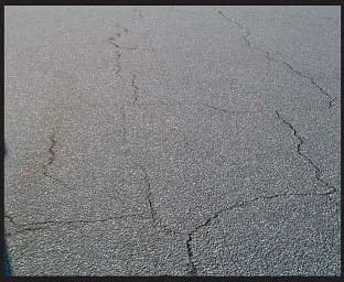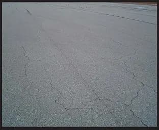 Block cracks are interconnected cracks that divide the pavement into approximately rectangular pieces. The blocks may range in size from approximately 1 by 1 feet to 10 by 10 feet (0.3 by 0.3 meters to 3 by 3 meters). Block cracking is caused mainly by shrinkage of the asphalt concrete (AC) and daily temperature cycling (which results in daily stress/ strain cycling). It is not load-associated. The occurrence of block cracking usually indicates that the asphalt has hardened significantly. Block cracking normally occurs over a large proportion of pavement area but sometimes will occur in non-traffic areas. This type of distress differs from alligator cracking in that alligator cracks form smaller, many-sided pieces with sharp angles. Also, unlike block cracks, alligator cracks are caused by repeated traffic loadings and, therefore, are located only in traffic areas (i. e., wheel paths).