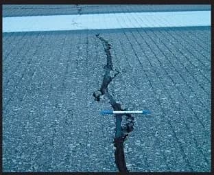 | High | ![]() | Cracks are severely spalled, causing definite FOD potential. They can be either filled or non-filled of any width. |