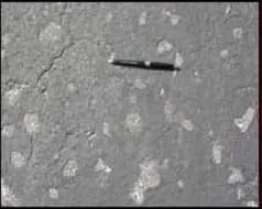 | Low | ![]() | (1) The scaled area is less than 1 percent. (2) In the case of coal tar where pattern cracking has developed, the surface cracks are less than 1/4 inch (6 mm) wide. |