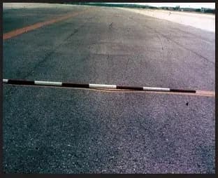 Rutting is measured in square feet (square meters) of surface area, and its severity is determined by the depth of the rut. To determine the rut depth, a straightedge should be laid across the rut and the maximum depth measured.