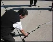 | Medium | ![]() | Some FOD potential; increased sweeping or other FOD removal methods may be required. May be evidence of slab movement and/ or some damage to adjacent structures or elements. Medium ASR distress is differentiated from low by having one or more of the following: increased FOD potential, increased cracking of the slab, some fragments along cracks or at crack intersections present, surface popouts of concrete may occur, pattern of wider cracks (predominantly 1 mm or wider) that may be subdivided by tighter cracks. |
